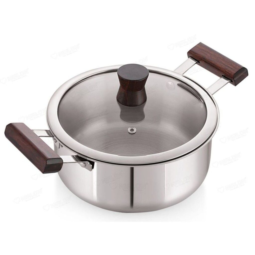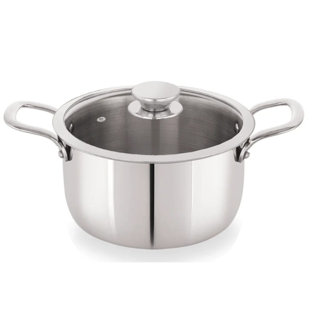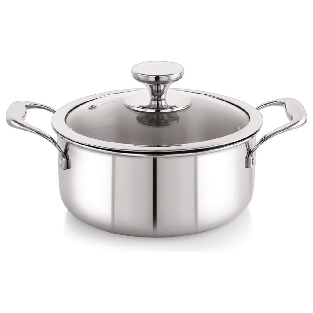 Plus TriPly Stainless Steel Stockpot / Casserole / Biryani Pot with Glass Lid | Non-Toxic | Safe to Use | Easy Cleaning | TRIPLY CONSTRUCTION