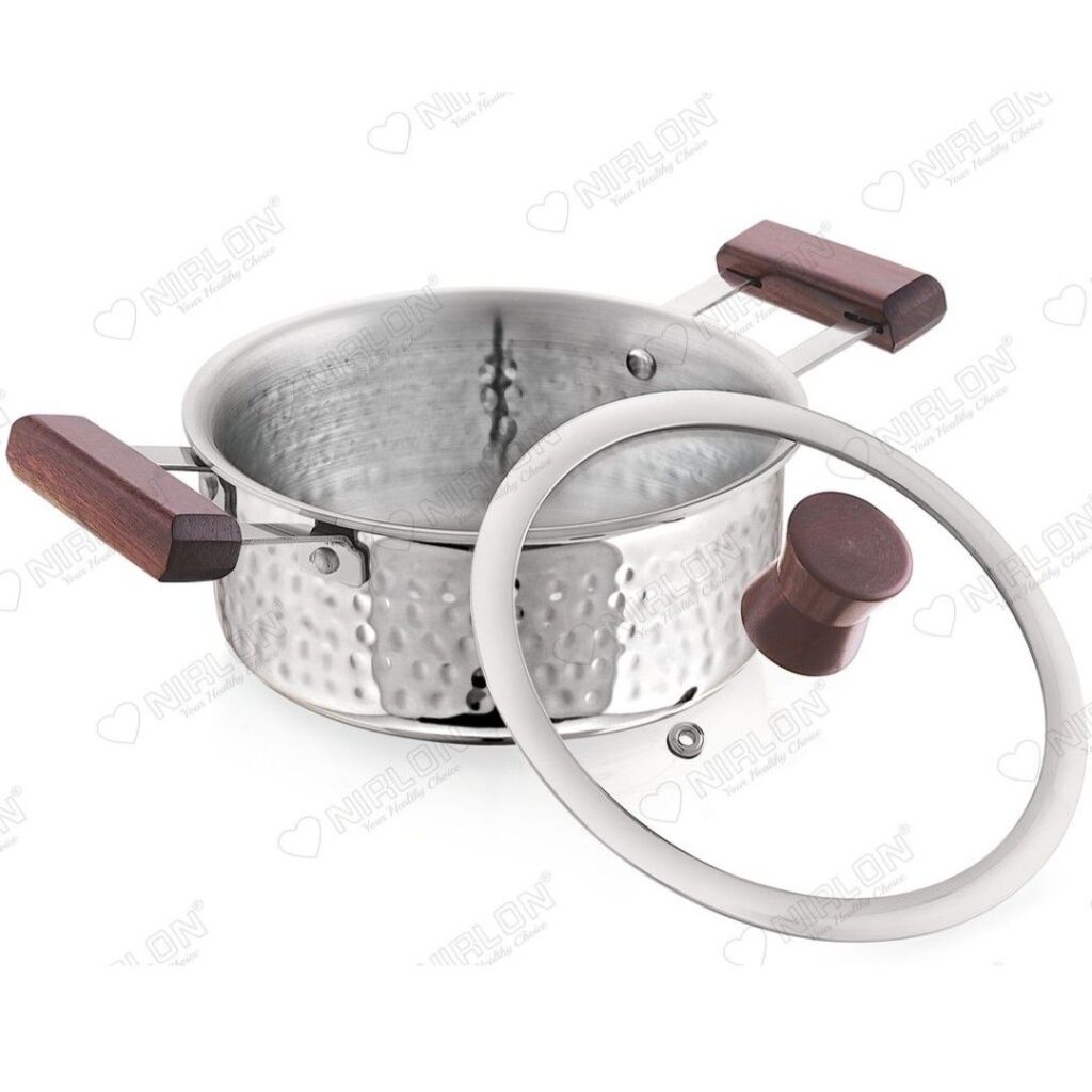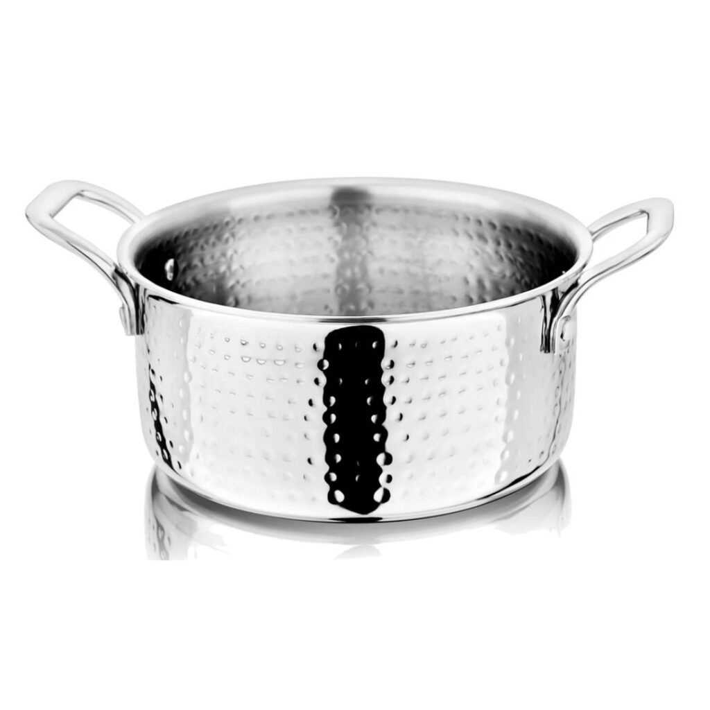 Platinum Hammered Tri-Ply Stainless Steel Casserole / Stockpot with Glass Lid | Non-Toxic | Safe to Use | Easy Cleaning | PREMIUM DESIGN