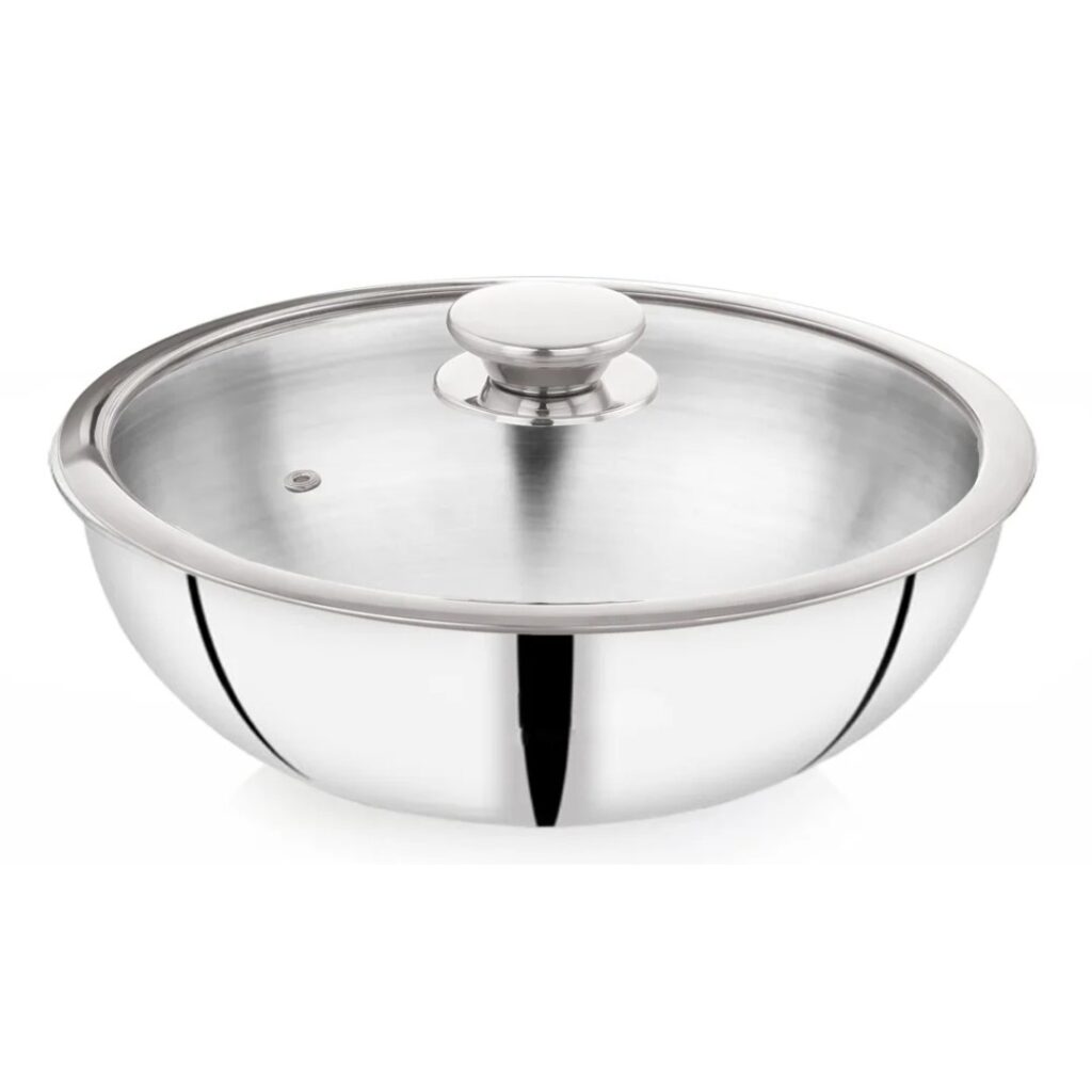 Smart Tri-Ply Stainless Steel Tasla / Tasra with Steel Lid | Non-Toxic | Safe to Use | Easy Cleaning (Induction and Gas Stove Friendly)