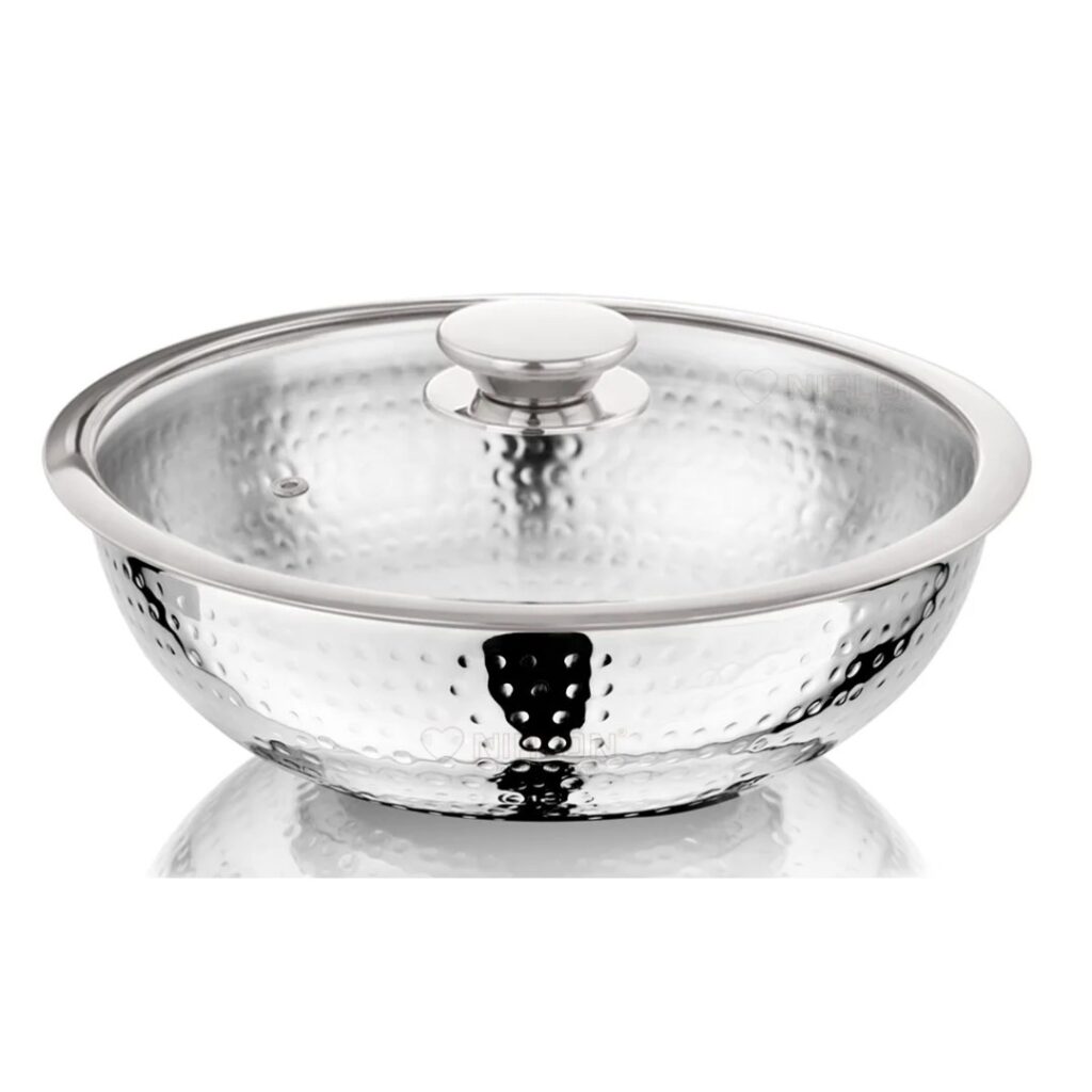 Hammered Smart Tri-Ply Stainless Steel Tasra / Tasla with Steel Lid | Non-Toxic | Safe to Use | Easy Cleaning | TRIPLY CONSTRUCTION