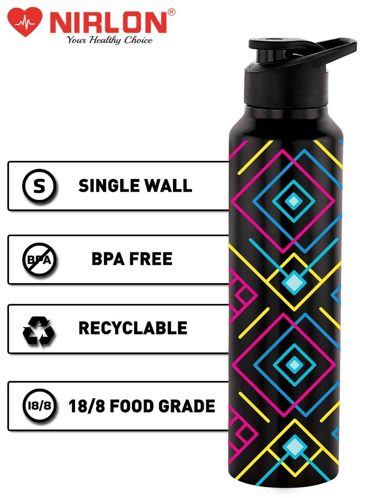 NIRLON stainless steel water bottle can be used by anyone in your family and you need not to worry about the changing temperatures when you are using the water bottle. This bottle specially designed for cold liquids and beverage. NIRLON stainless steel fridge bottle is made of high quality stainless steel. It has a single wall high quality teel body. Basically it is used to keep in the freezer, refrigerator, but apart from it you can use it anywhere like office, home, kitchen and in the travelling also. Stainless steel water bottle is 100% rustproof. No more stress when the soda spills, and you find it encompassing your stainless steel bottle. Just wipe clean, and no one will ever know. No need to handle with care. Bottle is so sturdy, it is completely shatterproof. Nirlon stainless steel water bottles keep your drinking water clean and pure in taste. You can wash nirlon stainless steel water bottles in the dishwasher as all the steel bottles from nirlon are dishwasher safe. Maintain sanitation by regularly washing your nirlon stainless steel water bottle in the dishwasher, unlike plastic water bottles which could melt or lose their shape. Regular washing eliminates germs that accumulate after usage. Environmentally friendly, durable, safe, and easy-to-clean. This fridge water bottle is made of high quality stainless steel material so these are very durable and long-lasting. This bottle is multipurpose you can carry it outside of the home. This is freezer safe, leak resistant and 100 percent food grade. These are specially designed and have flip cap for easy opening. These are light weight, compact and you can store not only water but also your favourite juices.