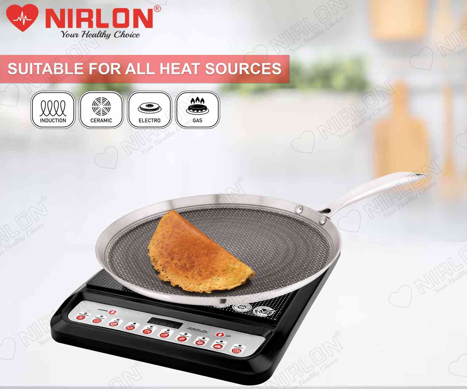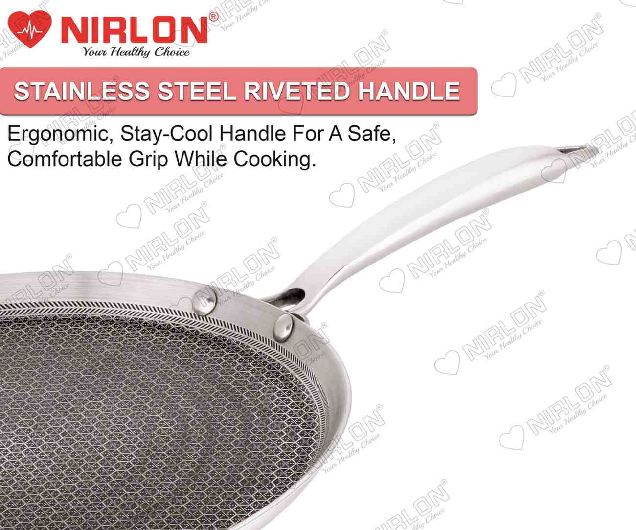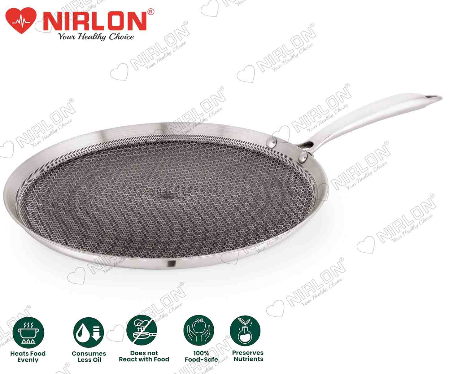 Be the first to review “NIRLON Platinum Honeycomb Triply Stainless Steel Cookware Flat Tawa 27cm with Cool Touch Handles|Safe to Use|Uniform Heating|Metal Spatula Friendly (Induction and Gas Stove Friendly)” Cancel reply