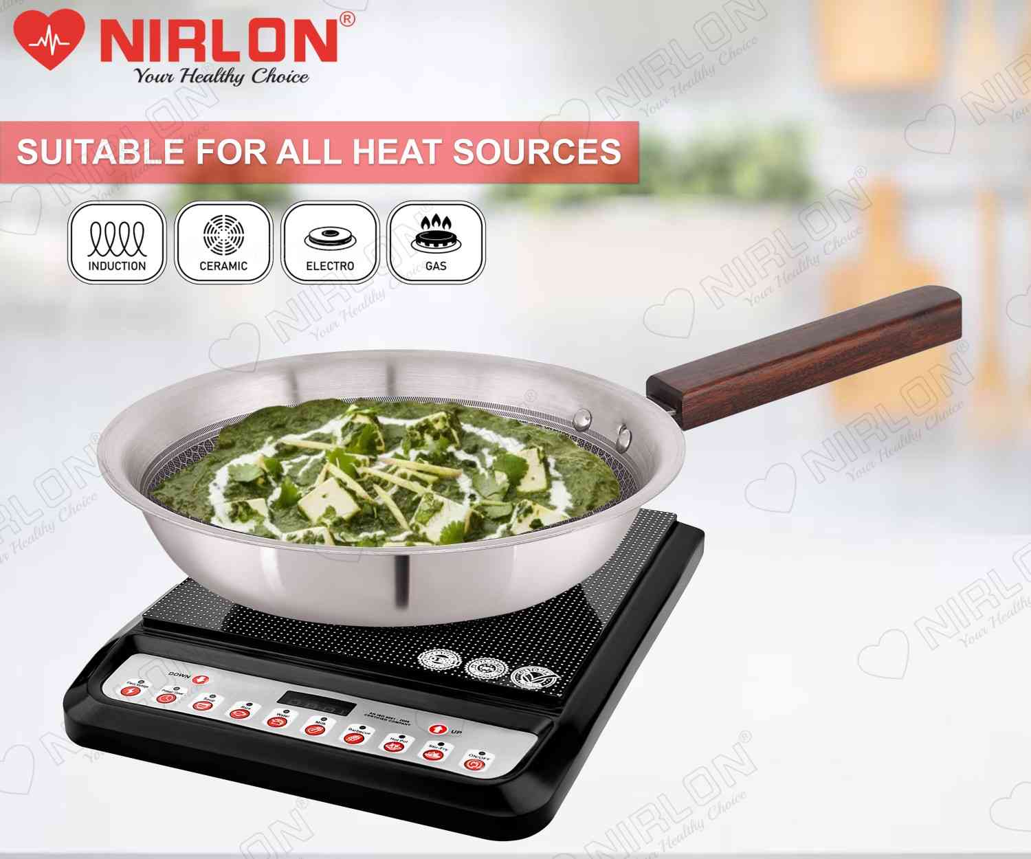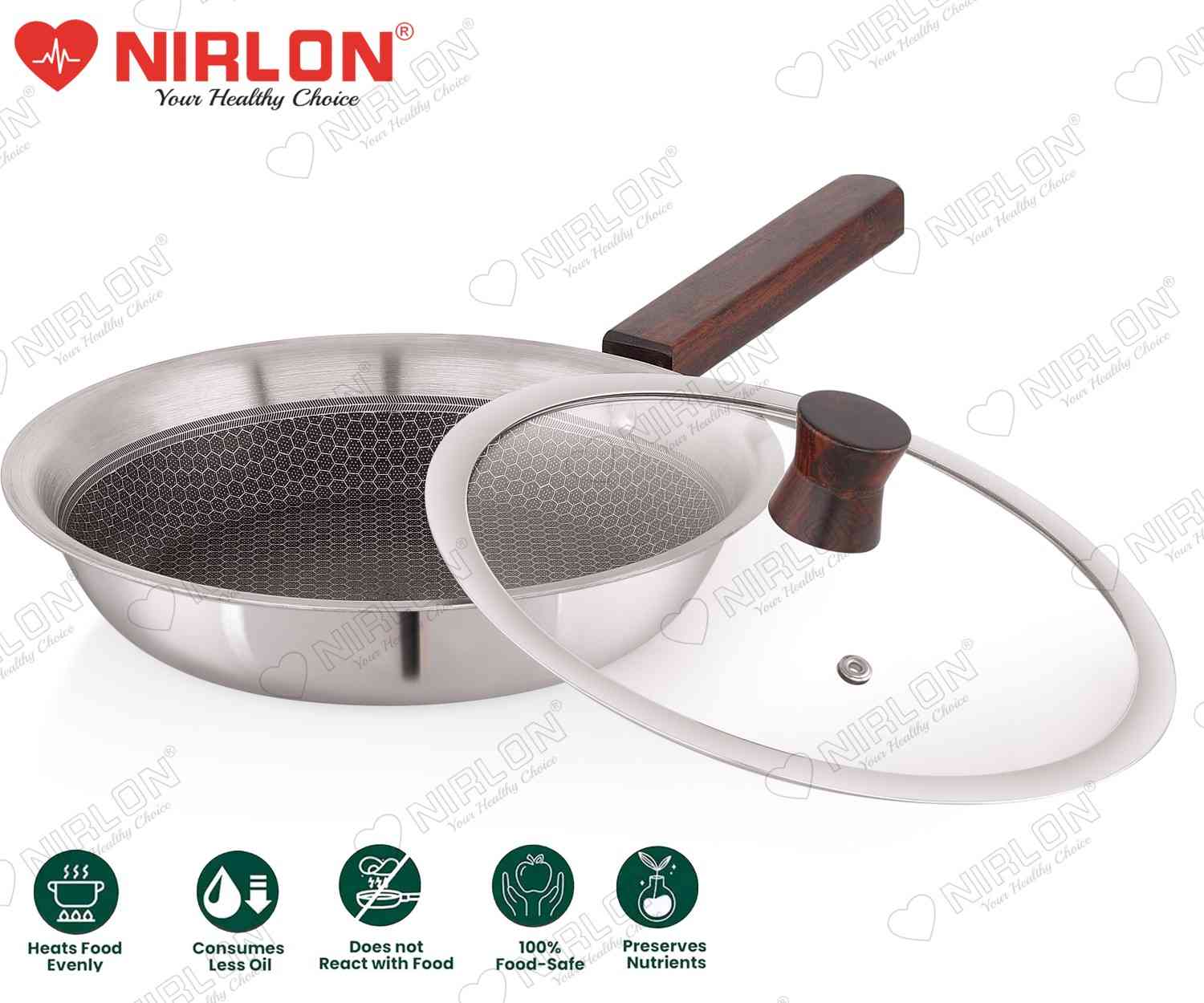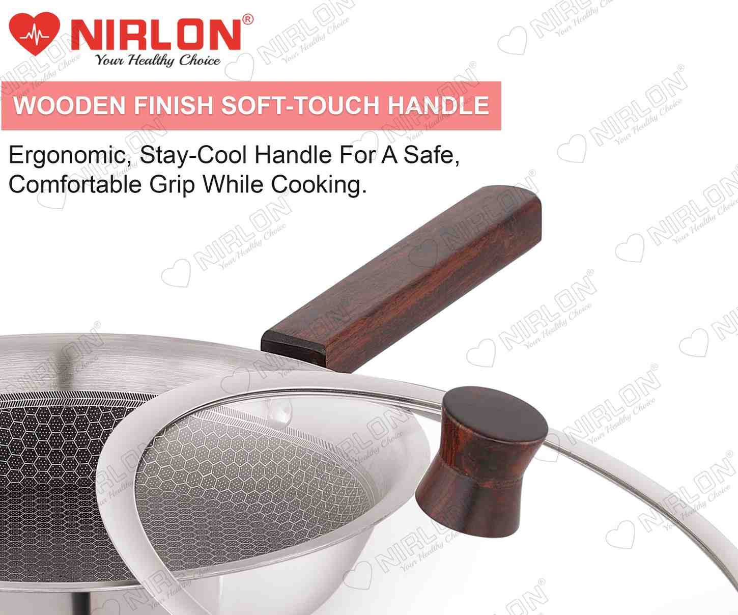 NIRLON newest Honeycomb Woody Series is Triply construction stainless steel cookware designed for your daily cooking requirements, for preparing healthy, flavorful meals for your family and friends. The cookware is built by carefully infusing the highest-grade metals, together for a seamless one-piece shiny cookware. Inner SS 304 stainless steel resists acidic foods and solutions to provide great tasting meals and avoid discolouration in food. Also, the non-reactive 18/10 surface resists heavy metal atoms from mixing in your food. The aluminium core provides uniform heat distribution throughout the cooking surface and retains heat within itself to help you burn 50% less gas/electric power per square millimetre of the cooking surface. The outermost 18/0 layer of magnetic steel provides a robust cover to inner surfaces while resisting rust and evenly conducting heat around the cookware body. The Honeycomb Woody Range of cookware is designed robustly to ensure cooking seems less like a chore. The cookware can provide you and your family with a long-lasting, easy-to-handle, chemical-free healthy cooking alternative to all the other usual cookwares available online.